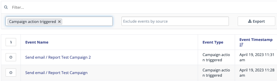 Die Tabelle “campaign_lead_event_log” sichert die Kampagnen-Aktivitäten von Kontakten. In der Historie eines Kontakts werden diese Aktivitäten durch die einzelnen Schritte repräsentiert:
